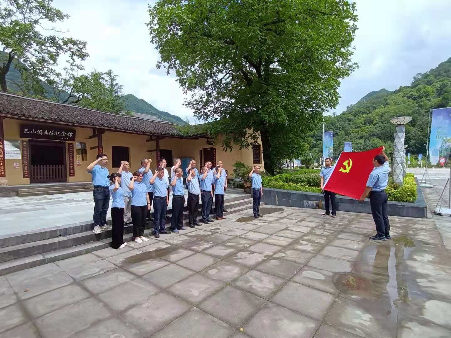 活動(dòng)現場(chǎng),同志們在講解員的帶領(lǐng)下參觀(guān)了巴山游擊隊紀念館,展廳內每一件展品、每一幅照片、每一段文字記載,生動(dòng)再現了當年革命先烈追求民族獨立和解放而浴血奮戰的英勇歷史。講解員生動(dòng)講述著(zhù)感人肺腑的紅色故事,讓大家仿佛置身于炮火連天的歲月之中,深深感受到革命先烈們戰斗的艱辛,為黨犧牲的決心,革命必勝的信心。在巴山游擊隊紀念館前,公司黨總支書(shū)記、董事長(cháng)李鵬帶領(lǐng)全體黨員重溫入黨誓詞,回顧入黨心路歷程,齊唱國歌,歌頌祖國。
