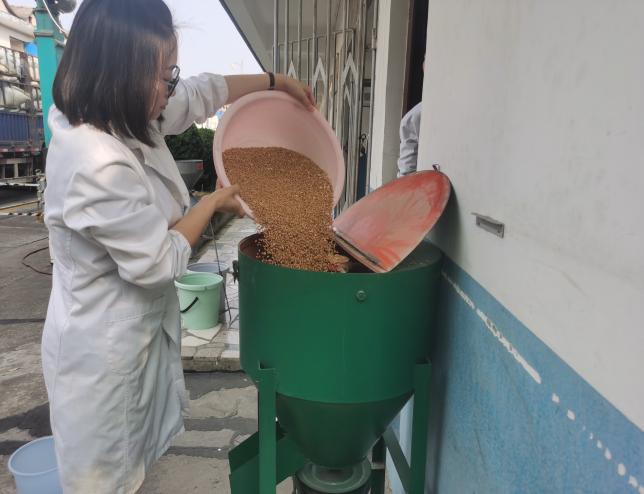 為確保政府儲備糧油輪換任務(wù)按時(shí)、按質(zhì)、按量的完成,市糧儲公司一線(xiàn)干部職工每天天剛拂曉就來(lái)到糧食收、出作業(yè)現場(chǎng),開(kāi)啟一天緊張有序的工作。質(zhì)檢員作為糧食質(zhì)量安全的守門(mén)員,他們從扦樣、分樣、送樣到檢測,從糧食常規質(zhì)量指標、儲存品質(zhì)指標到食品安全指標的檢測均嚴格按操作流程,高質(zhì)量完成每一份樣品、每一項指標的檢測任務(wù),保障了入庫糧食質(zhì)量合格;倉儲管理員堅守卸糧現場(chǎng),嚴格抽查入庫糧食質(zhì)量,盡管汗